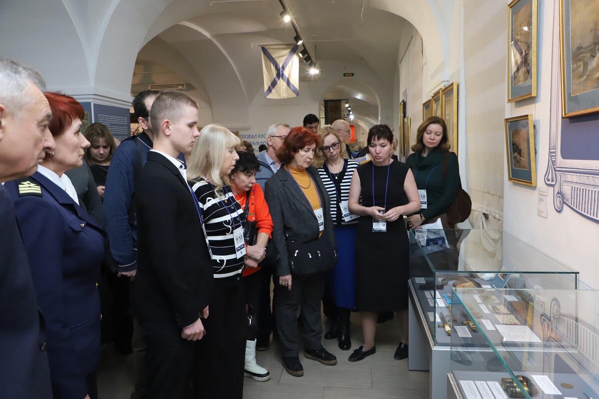 После церемонии для участников и гостей Мария Олейник провела первую авторскую экскурсию. Экспозиция раскрывает творческий путь А.В. Ганзена, пришедшийся на переломные эпохи: Русско-японскую и Первую мировую войны, революцию. Особое внимание уделено уникальному альбому 1916 года «Российский императорский флот» с 25 акварельными изображениями кораблей, а также серии картин, документально запечатлевших боевую работу флота в годы Первой мировой войны, созданных по заказу Морского министерства.