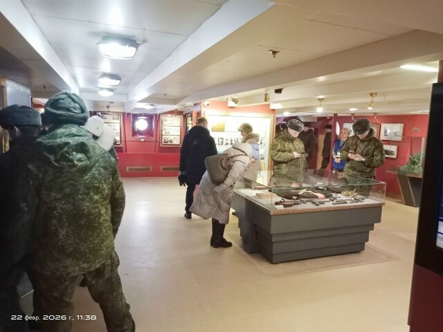 Посетители «Авроры» в праздничные дни одними из первых увидели экспозиции «Красная Армия в фотографиях», «Шторм» и «Есть такая профессия — Родину защищать». Выставки, посвящённые истории и современности Вооружённых сил России, вызвали живой интерес как у петербуржцев, так и у многочисленных гостей северной столицы.