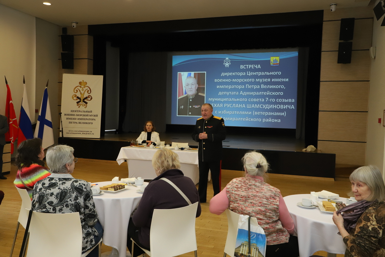 В Центральном военно-морском музее имени императора Петра Великого состоялась встреча депутата Адмиралтейского муниципального совета Руслана Нехая с избирателями. Мероприятие прошло в неформальной обстановке за чашкой чая и объединило обсуждение насущных вопросов жизни района с погружением в морскую историю страны.