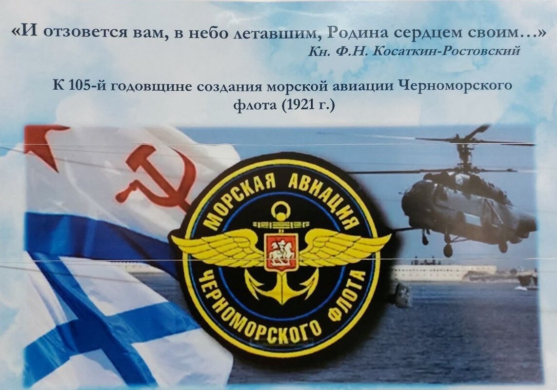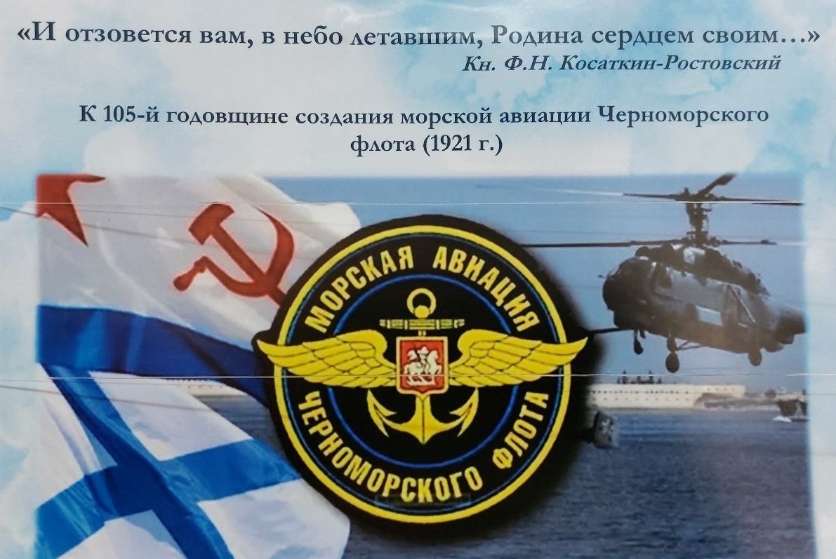 В библиотеке севастопольского филиала Центрального военно-морского музея имени императора Петра Великого «Музей Черноморского флота» начала работу книжная выставка «И отзовётся вам, в небе летавшим, Родина сердцем своим...» Экспозиция приурочена к знаменательной дате — 105-й годовщине со дня создания морской авиации Черноморского флота (1921 год).