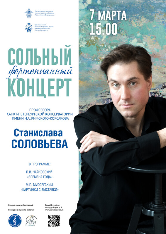 Ждем вас, ваших детей и близких в ЦВММ, где 7 марта в 15 часов начнется сольный фортепианный концерт профессора Санкт-Петербургской консерватории имени Н.А. Римского-Корсакова Станислава Соловьева. В программе: П.И. Чайковский «Времена года» и М.П. Мусоргский «Картинки с выставки».