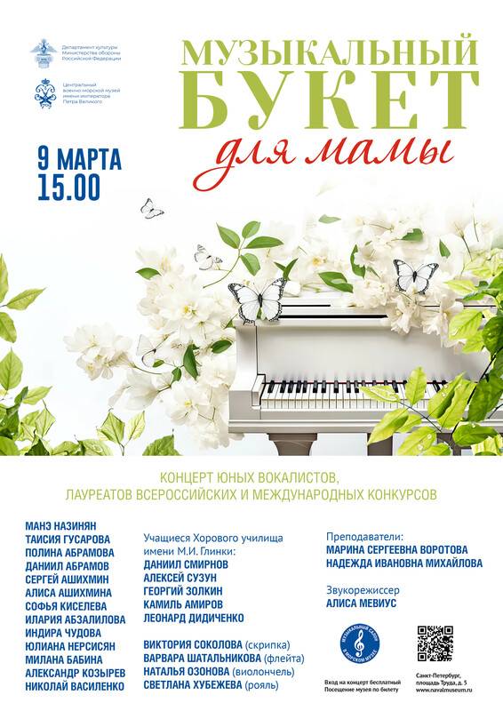 Центральный военно-морской музей имени императора Петра Великого и его филиалы приглашают женщин посетить свои экспозицию, которые по случаю Международного женского дня работают 7, 8 и 9 марта 2026 года как в обычные дни.