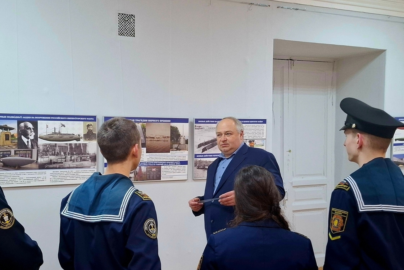 В исторических стенах Итальянского дворца работала тематическая выставка, посвященная ключевым этапам становления и развития отечественного подводного флота: от первых субмарин начала XX века до современных атомных ракетоносцев.
