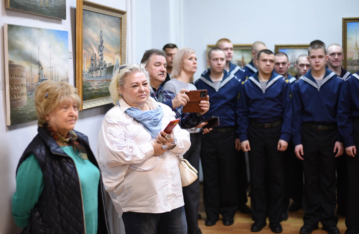 Куратор выставки, методист филиала Елена Большакова провела первую экскурсию для гостей музея, подробно рассказав об основных направлениях творчества автора. Особый интерес у присутствующих вызвала работа под названием «Карта» — самая сложная и масштабная в экспозиции. Полотно посвящено кругосветным экспедициям, стартовавшим из Кронштадта, великим открытиям российских моряков, а также знаменитым морским сражениям XVIII–XIX веков, которые происходили на подступах к острову-крепости.
