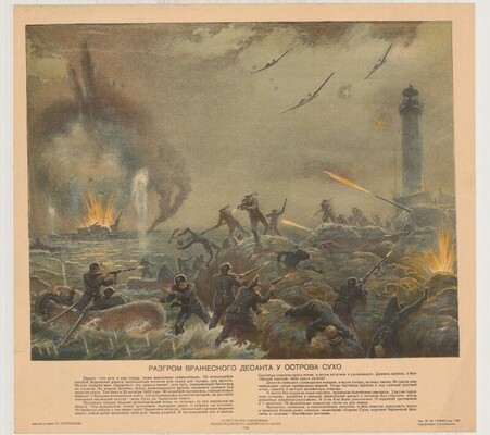 Непринцев Юрий Михайлович. Плакат-литография. "Разгром вражеского десанта у о.Сухо"1943 г.