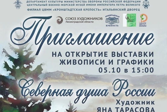 5 октября 2023 года в филиале ЦВММ «Кронштадтская крепость» открывается выставка Яны Тарасовой «Северная душа России». Начало в 15 часов.