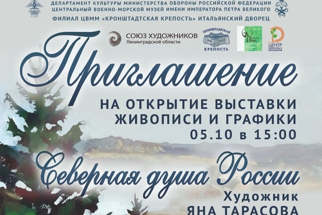 5 октября 2023 года в филиале Центрального военно-морского музея «Кронштадтская крепость» состоится значимое культурное событие – торжественное открытие персональной выставки петербургского художника Яны Тарасовой «Северная душа России». Начало в 15 часов.