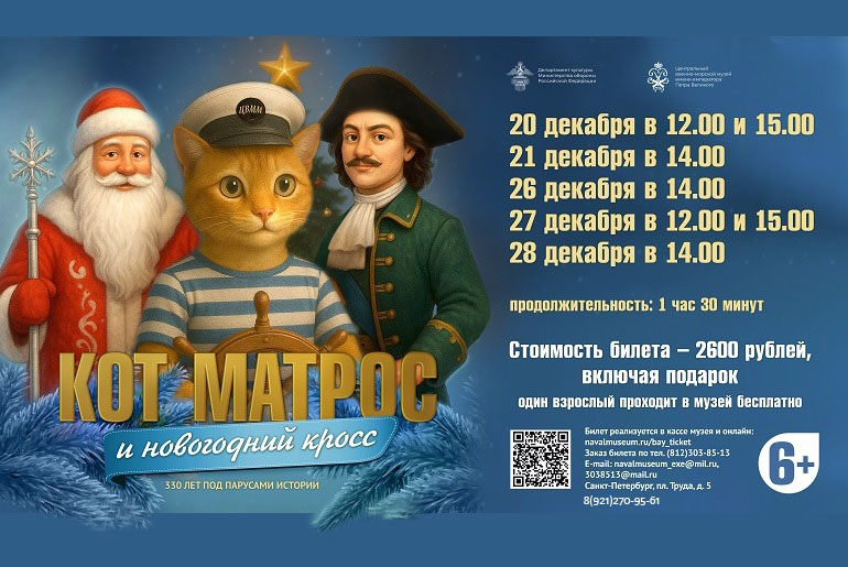 Центральный военно-морской музей приглашает детей в возрасте от 6 лет принять участие в интерактивной программе «Кот Матрос и новогодний кросс».