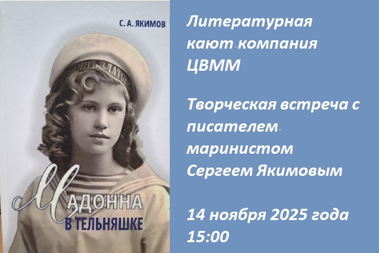 В пятницу, 14 ноября в конференц-зале ЦВММ откроет двери литературная кают-компания, для гостей которой, школьников Адмиралтейского района, организована творческая встреча с писателем-маринистом, кандидатом исторических наук Сергеем Александровичем Якимовым.