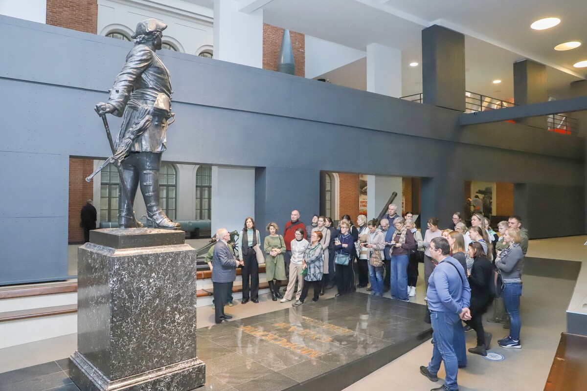 Программа вечера началась с эксклюзивной экскурсии по залам ЦВММ, которая погрузила участников в атмосферу эпохи петровских реформ. Это позволило гостям по-новому осмыслить масштаб личности императора и подготовило почву для выступлений экспертов.
