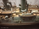 Выставка освещает историю создания этого малого флота. Шлюпки для «Авроры» были изготовлены шлюпочной мастерской Санкт-Петербургского порта. Металлический завод поставил на корабль все шлюпбалки – специальные устройства для спуска и подъема шлюпок на воду, а паровые катера для крейсера изготовил Адмиралтейский завод.
