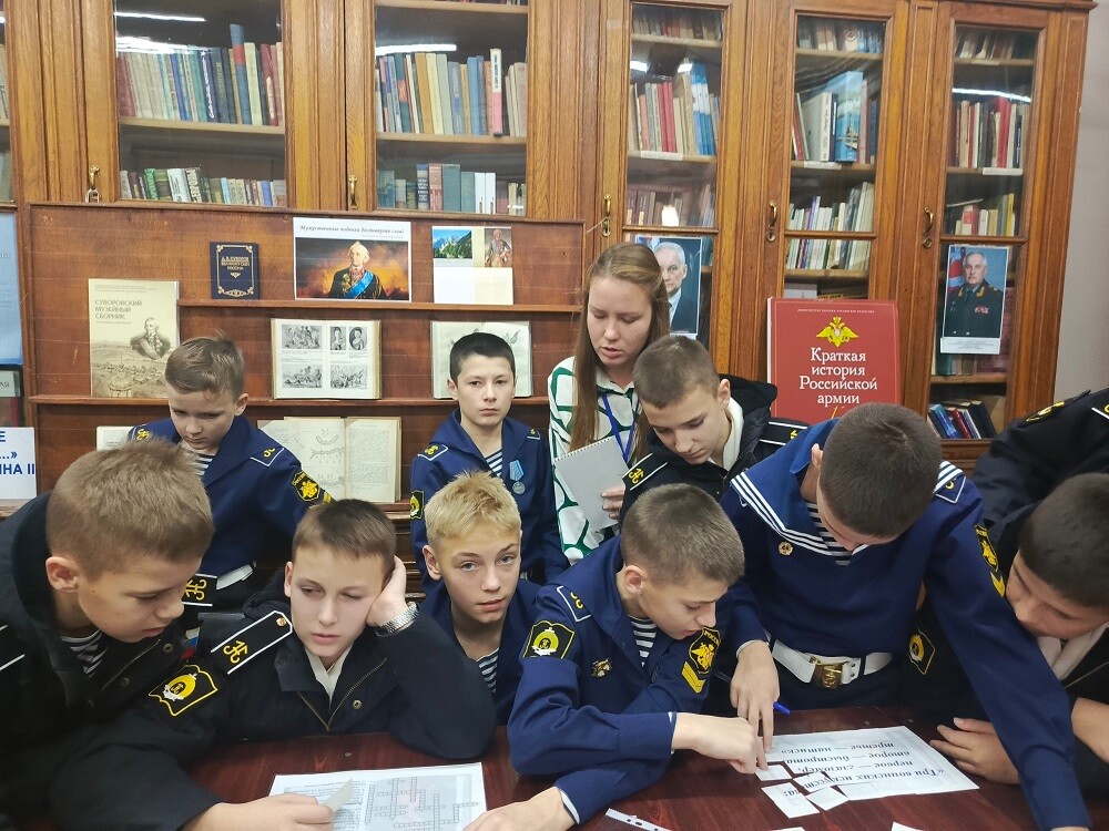В залах музея, посвященного военно-морской истории России, нахимовцы прослушали лекцию «Всегда впереди! Всегда победитель!». А затем, приняли участие в организованном специально для них квесте «Бить не числом, а умением».
