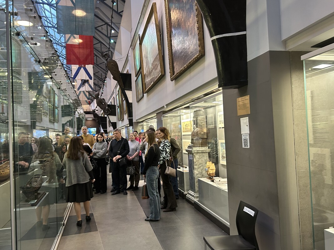 Интенсивная экскурсионная программа объединила самые разные аудитории. Музей посетила крупная делегация из Тульской области, включавшая более 500 детей и сопровождающих лиц. Знакомство с историей флота также провели воспитанники Нахимовского военно-морского училища, студенты Горного университета и учащиеся школ города.