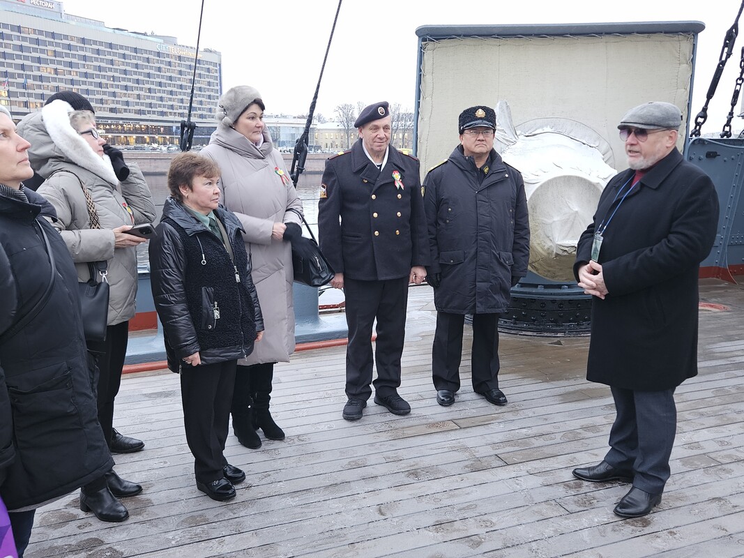 Для делегации была проведена обширная экскурсия по крейсеру «Аврора» и экспозиции филиала, которую блестяще провели лекторы-экскурсоводы С. Самарин и А. Сизов. Это мероприятие стало ярким стартом празднования, напомнив об общих героических страницах истории и укрепив дух морского братства.
