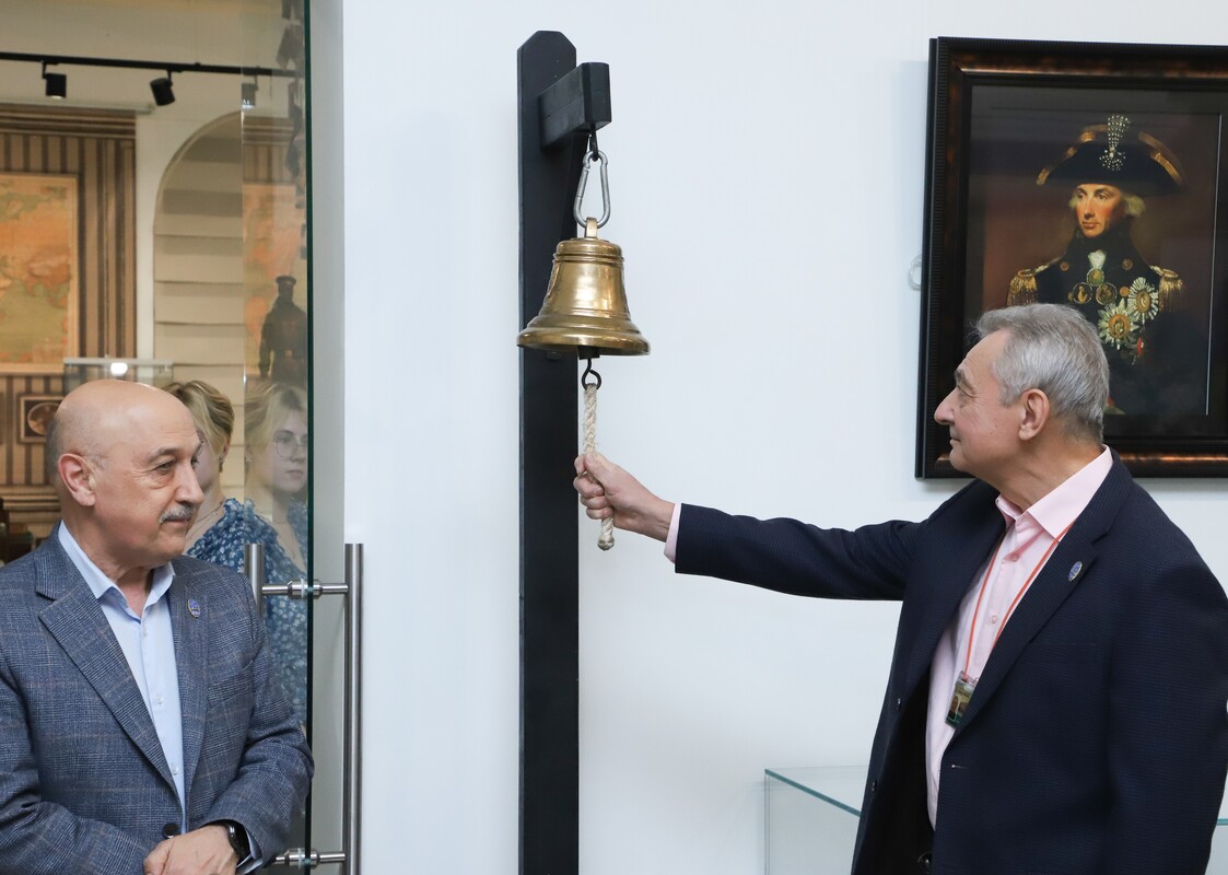 Право ударить в корабельный колокол в честь открытия было предоставлено лучшему экскурсоводу ЦВММ Александру Кабирову.