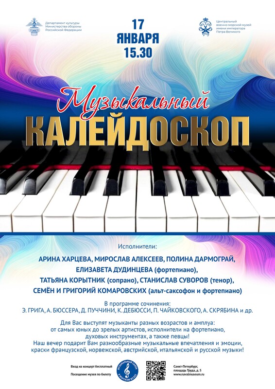 17 января в 15.30 приглашаем вас в Центральный военно-морской музей на концер ную программу «Музыкальный калейдоскоп».