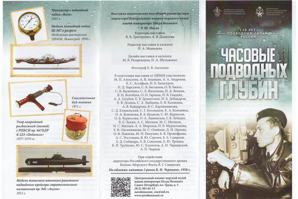 Буклет рассказывает о выставке, открывшейся в ЦВММ к юбилею подводных сил России.